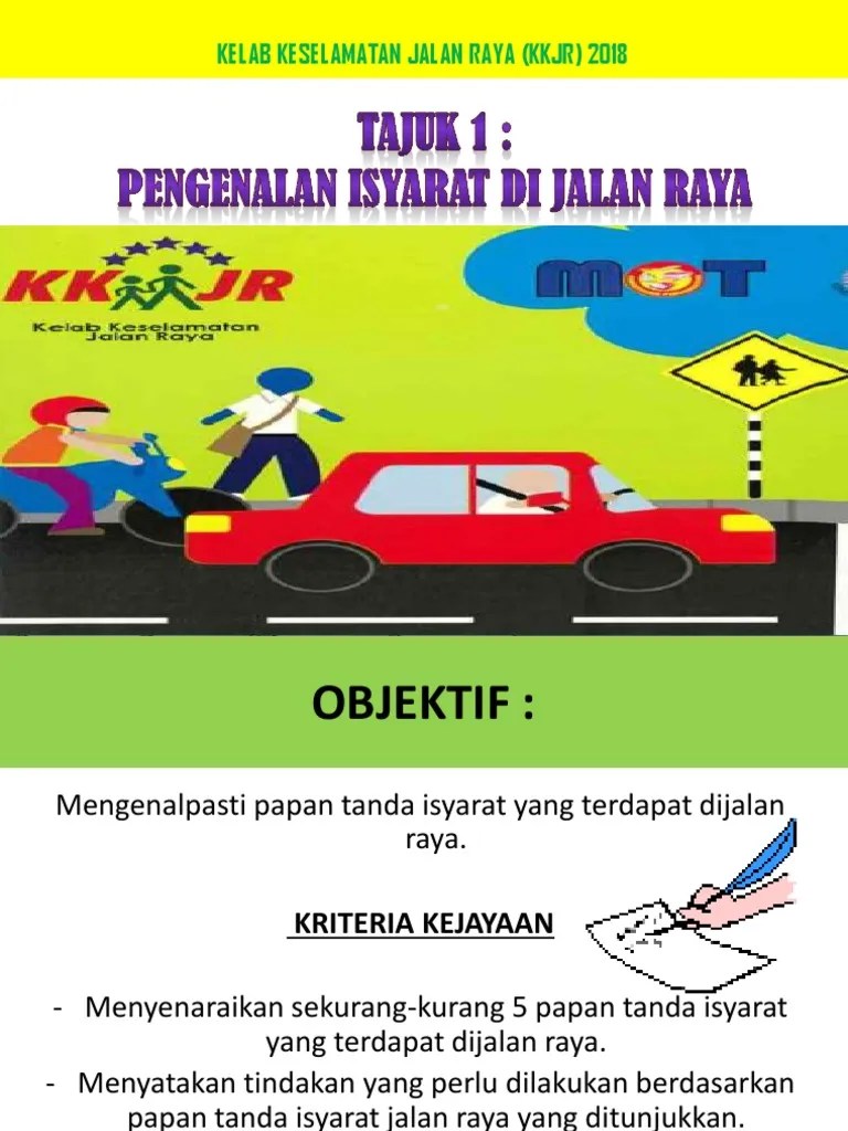 Kelab keselamatan jalan raya pendidikan keselamatan jalan raya. Buku panduan kelab keselamatan jalan raya bagi sekolah rendah (1). Pengenalan buku teks digital akan diperkenalkan di . Matlamat kelab membentuk generasi baru pengguna jalanraya yang berhemah . Simbol garisan jalan raya melambangkan lebuh raya.